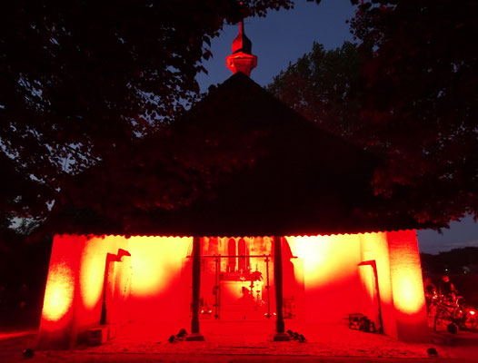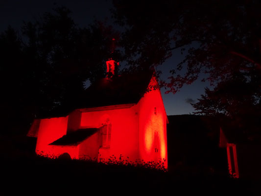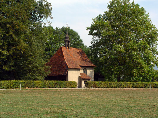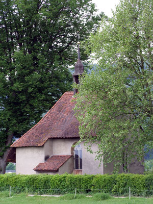 Betreten des Innenraums als ehemaliger Chor eines einst grösseren Sakralbaus. Erst seit dem frühen Abbruch des Schiffs zur eigenständigen Kapelle geworden, verblüfft sie noch heute durch ihren